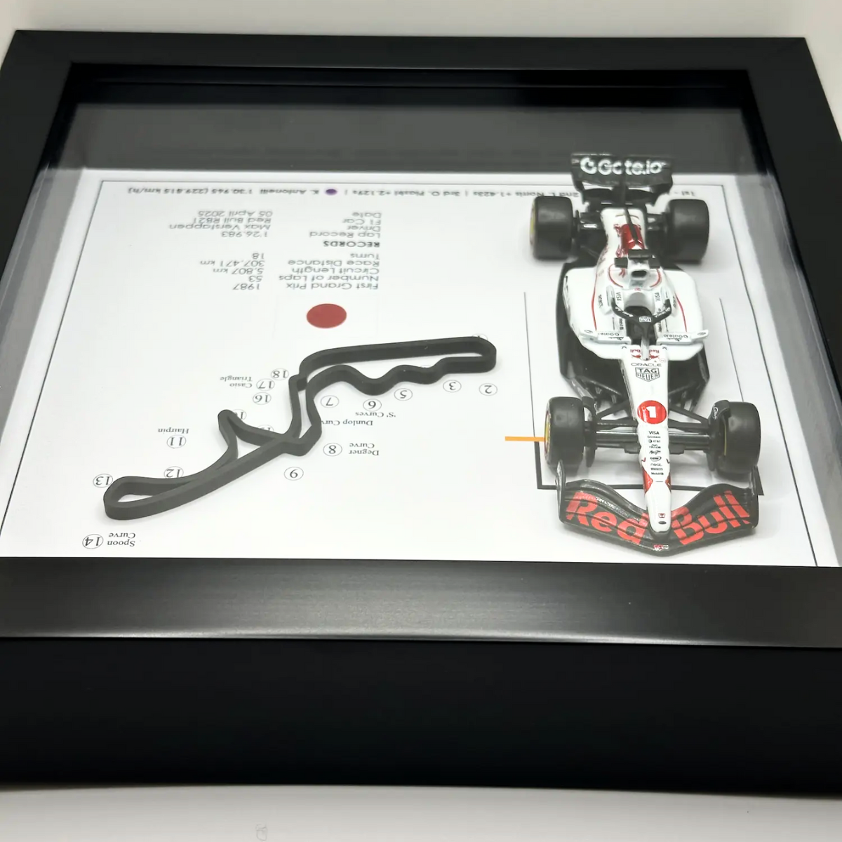 A framed three-dimensional artwork inspired by the 2025 Japanese Grand Prix at Suzuka.